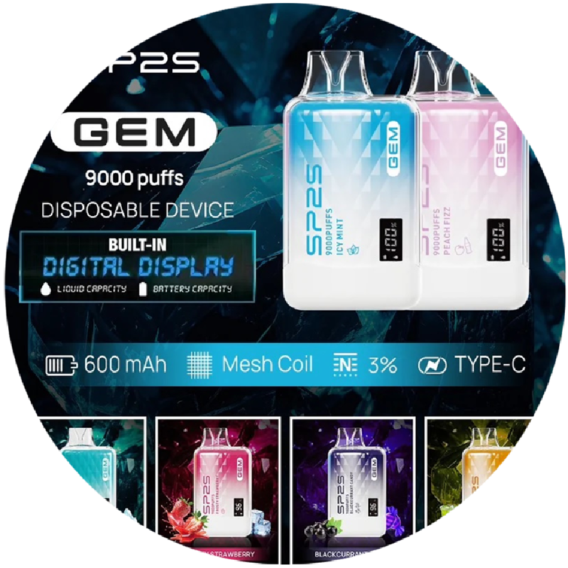 SP2S GEM 9000口拋棄式電子煙|高顏值智能顯示 × 超大容量可充電 × 多口味